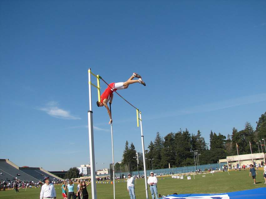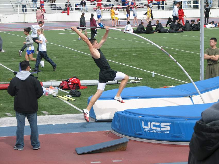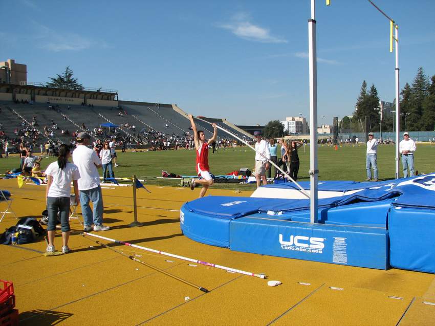 The top 3 vaulters from this meet moves on to Baltimore MD. Anthony was seeded #2. During his warm ups his pole broke on his first full run. During the upward swing the carbon pole shattered in two pieces leaving him holding one as he landed on his neck and head first on the mat and the other end of the pole flying about 30 yards in the air. Due to the nature of the incident the meet official will petition that Anthony move on to the National JO’s in Baltimore, MD. from him being a State Qualifier and winning the Pacific JO meet.